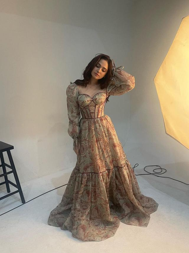 Syifa Hadju pernah tampil anggun dalam maxi dress bermotif etnik dengan detail lengan puff, menciptakan kesan dreamy yang khas boho.